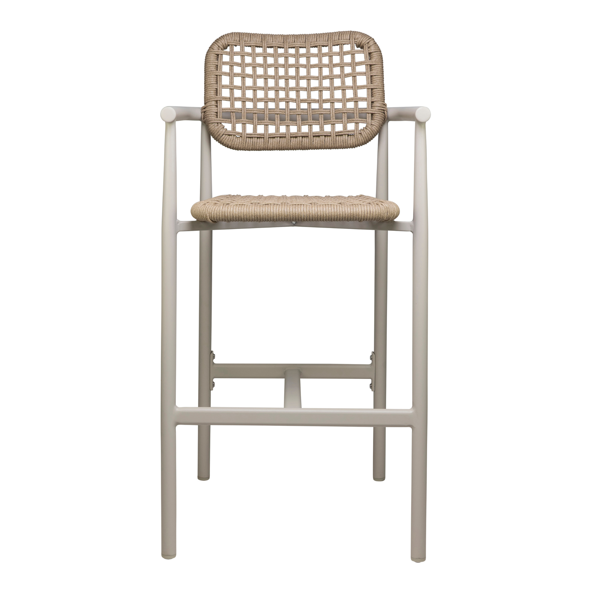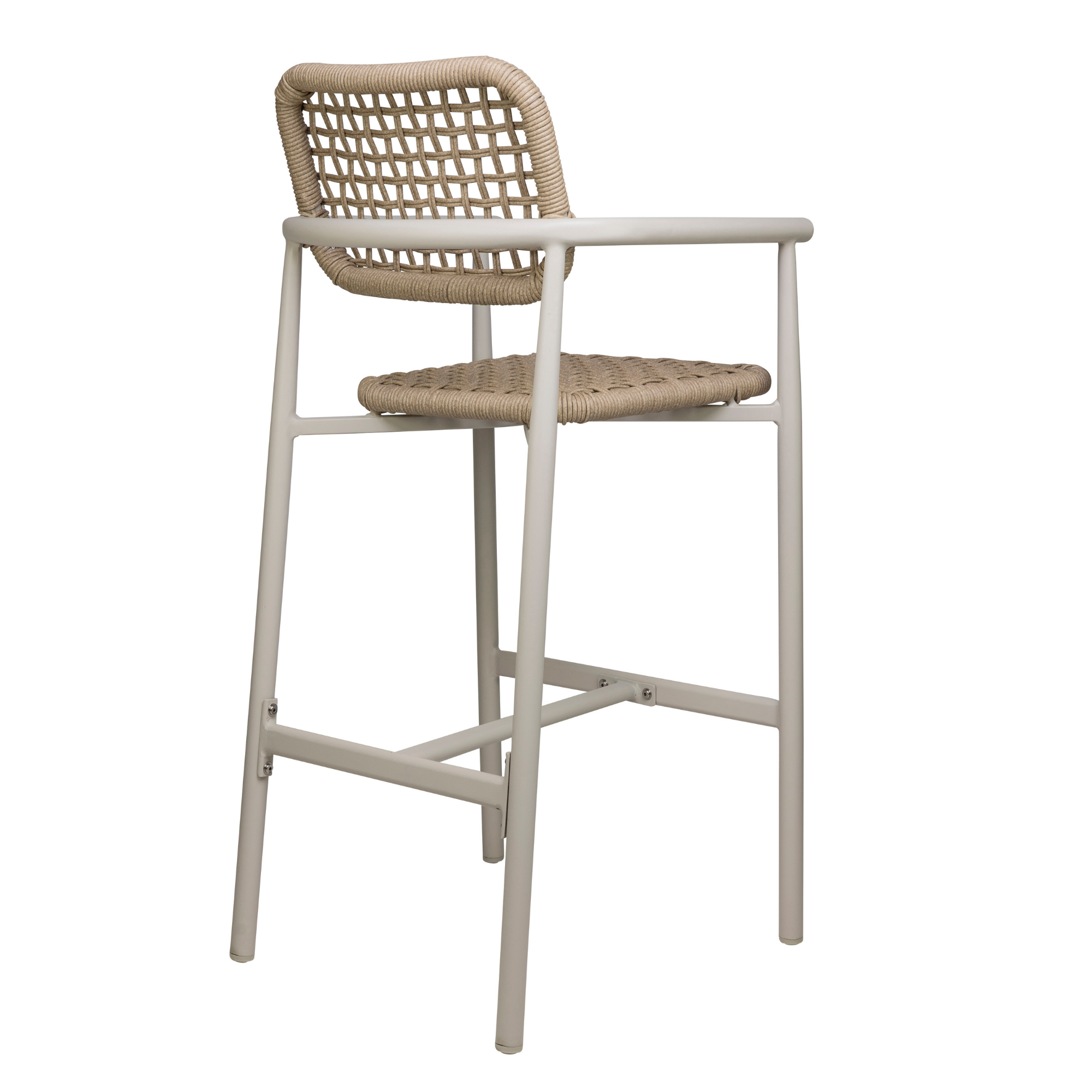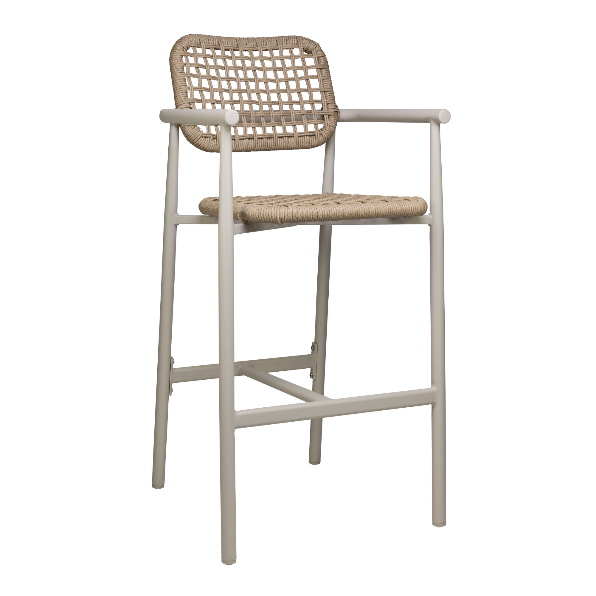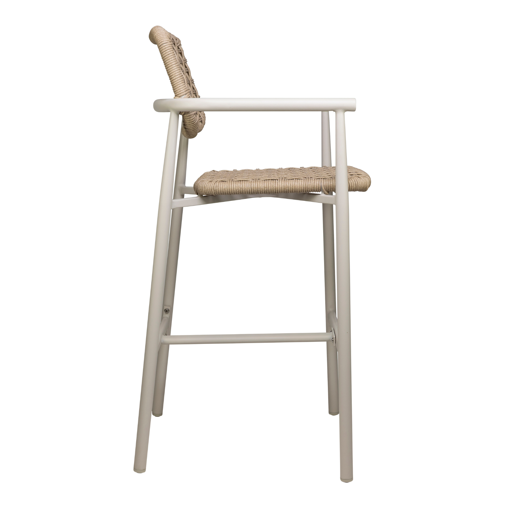 Scaun de bar cu cotiere pentru exterior Charly cu cadru din aluminiu alb, natur, 110 cm