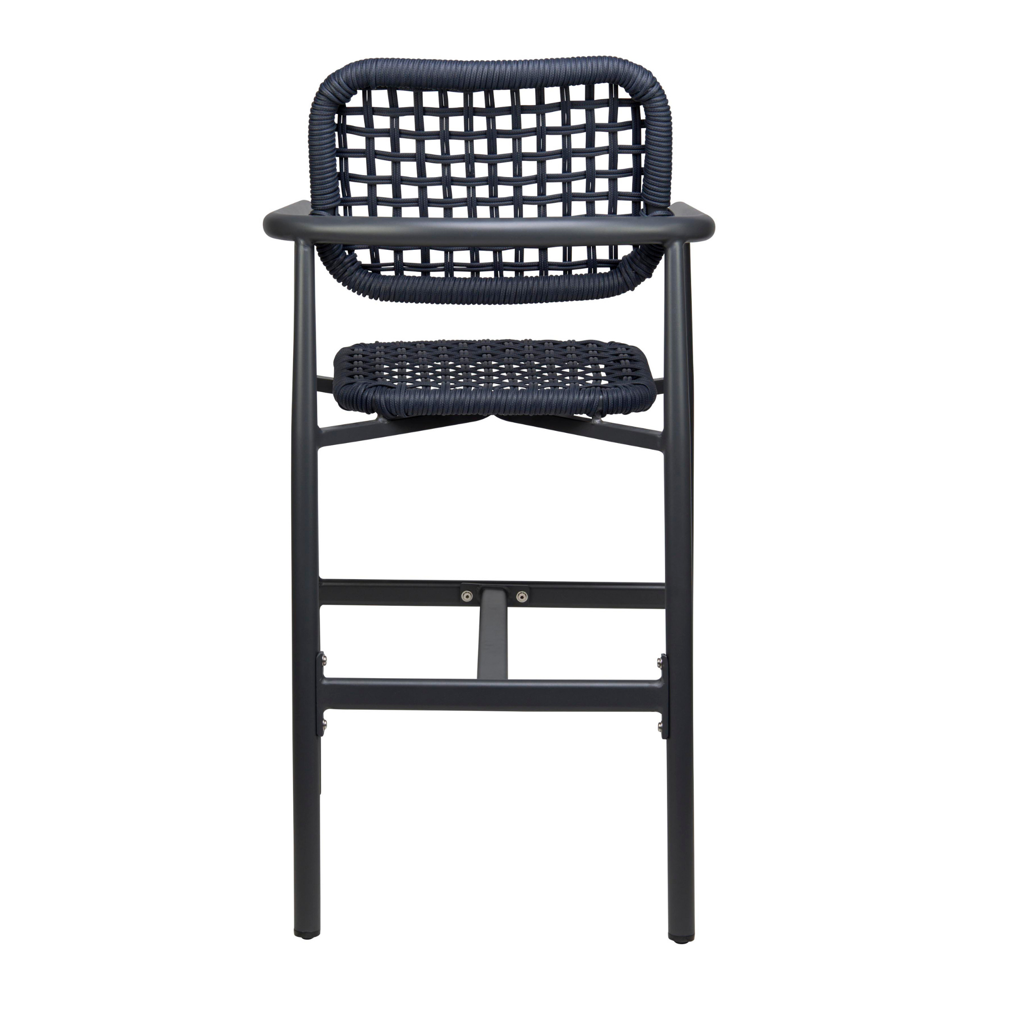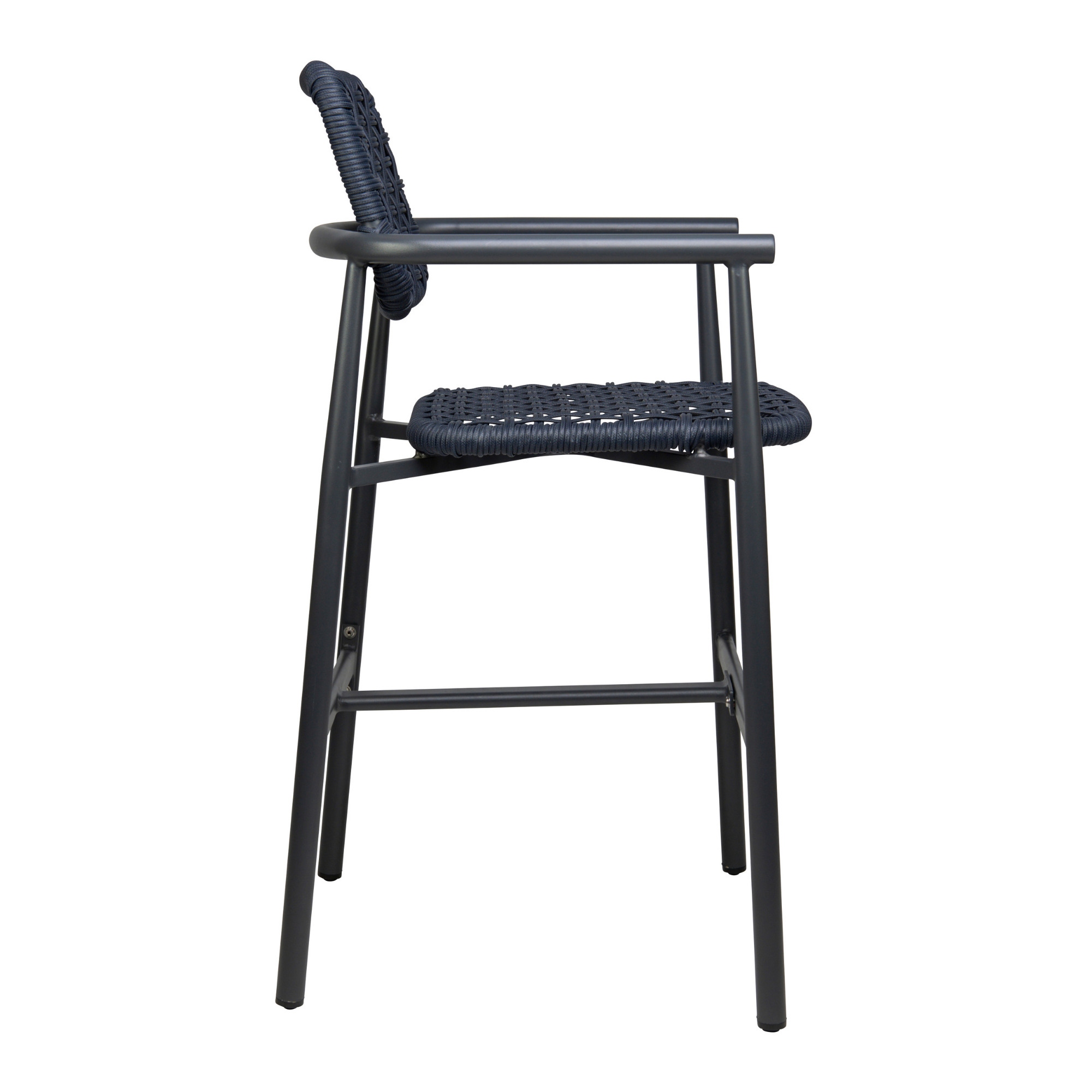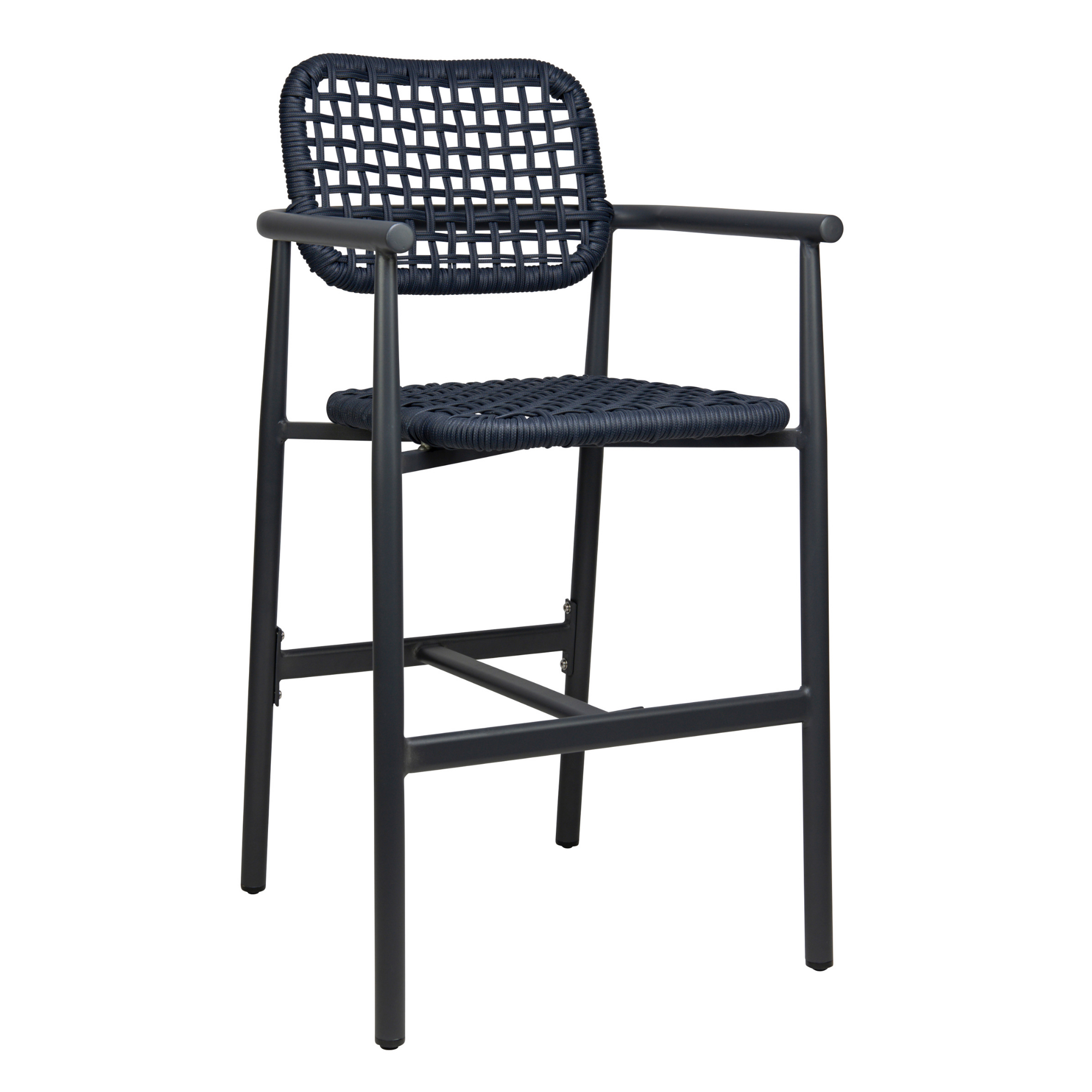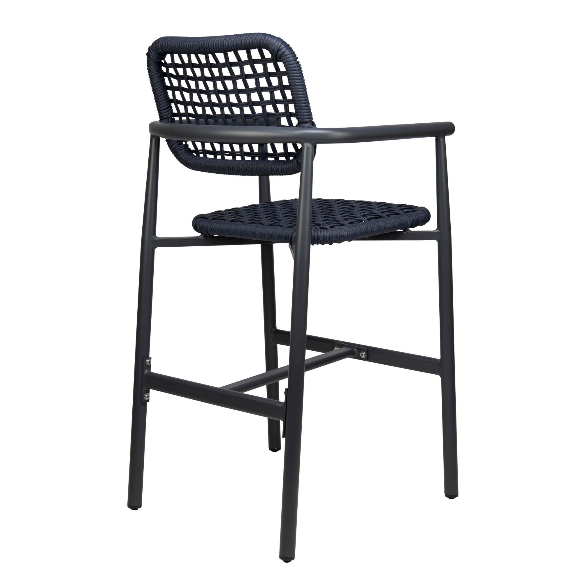 Scaun de bar cu cotiere pentru exterior Charly cu cadru din aluminiu antracit, albastru, 100 cm
