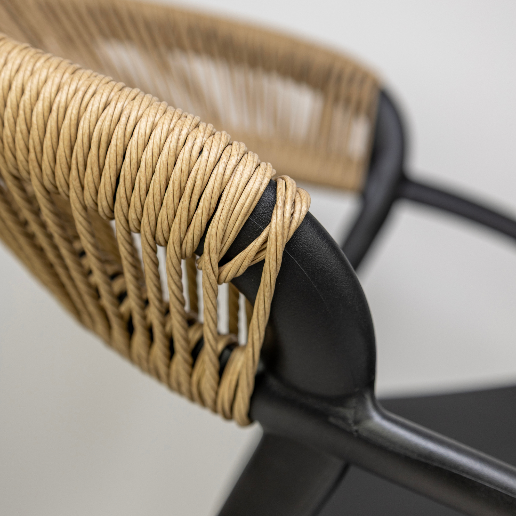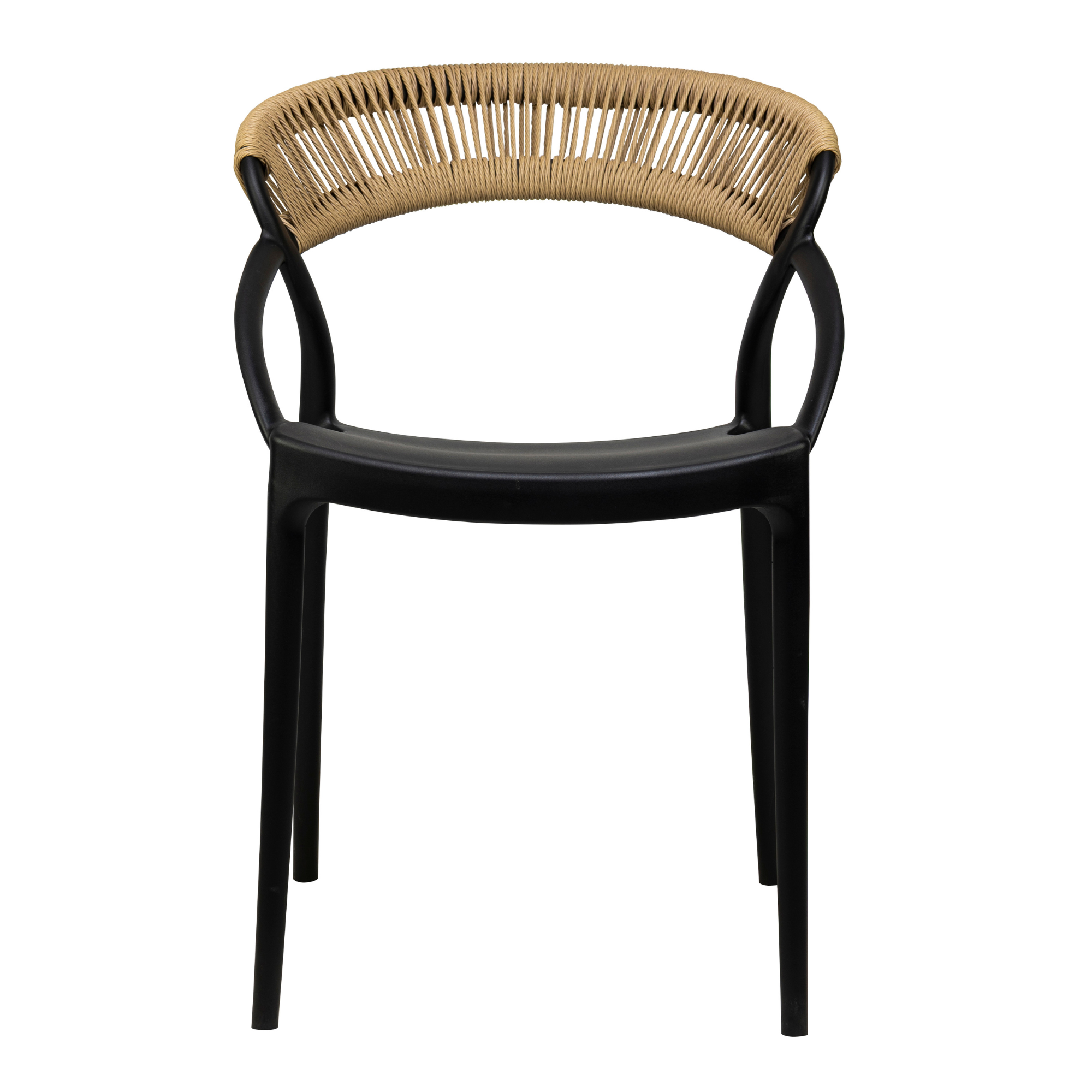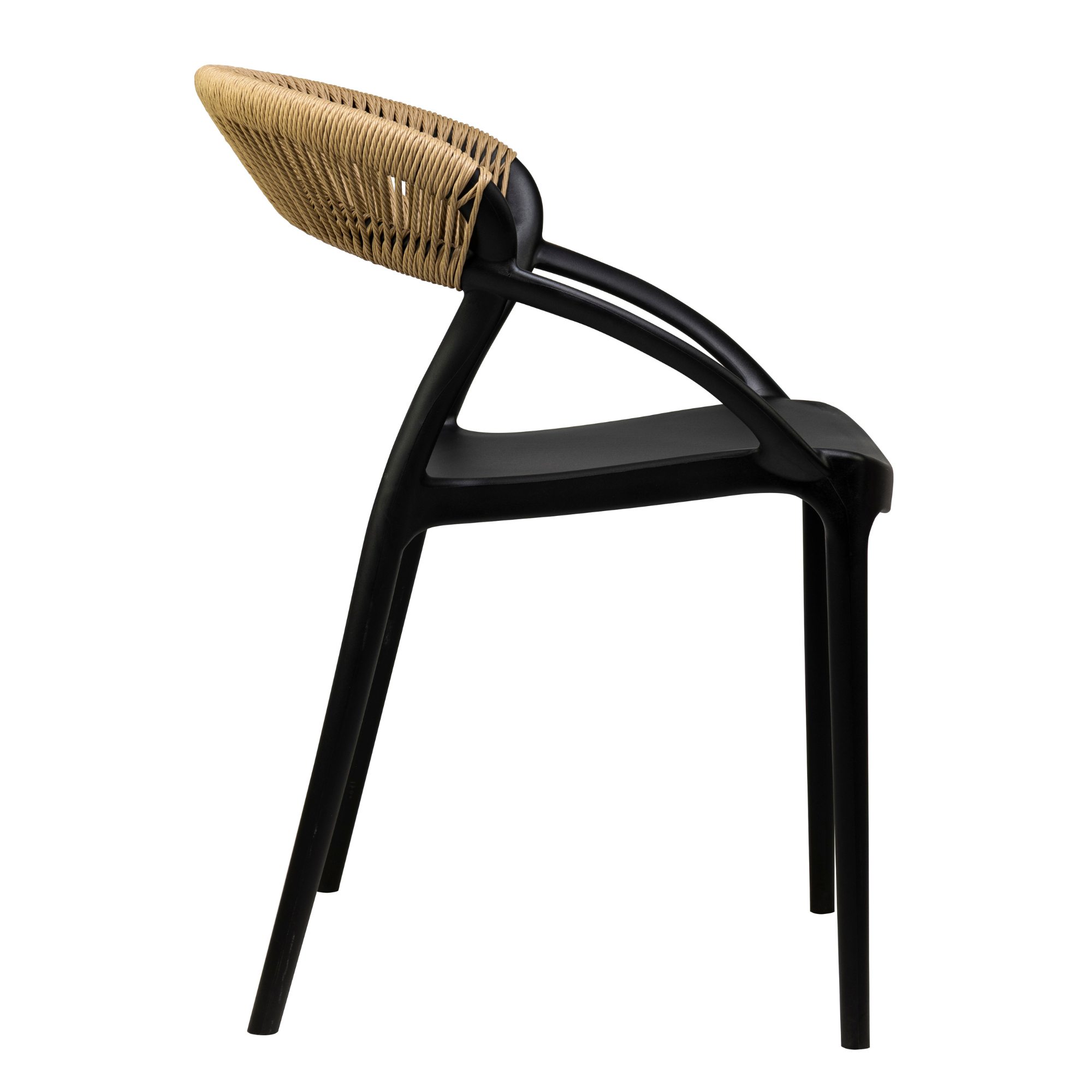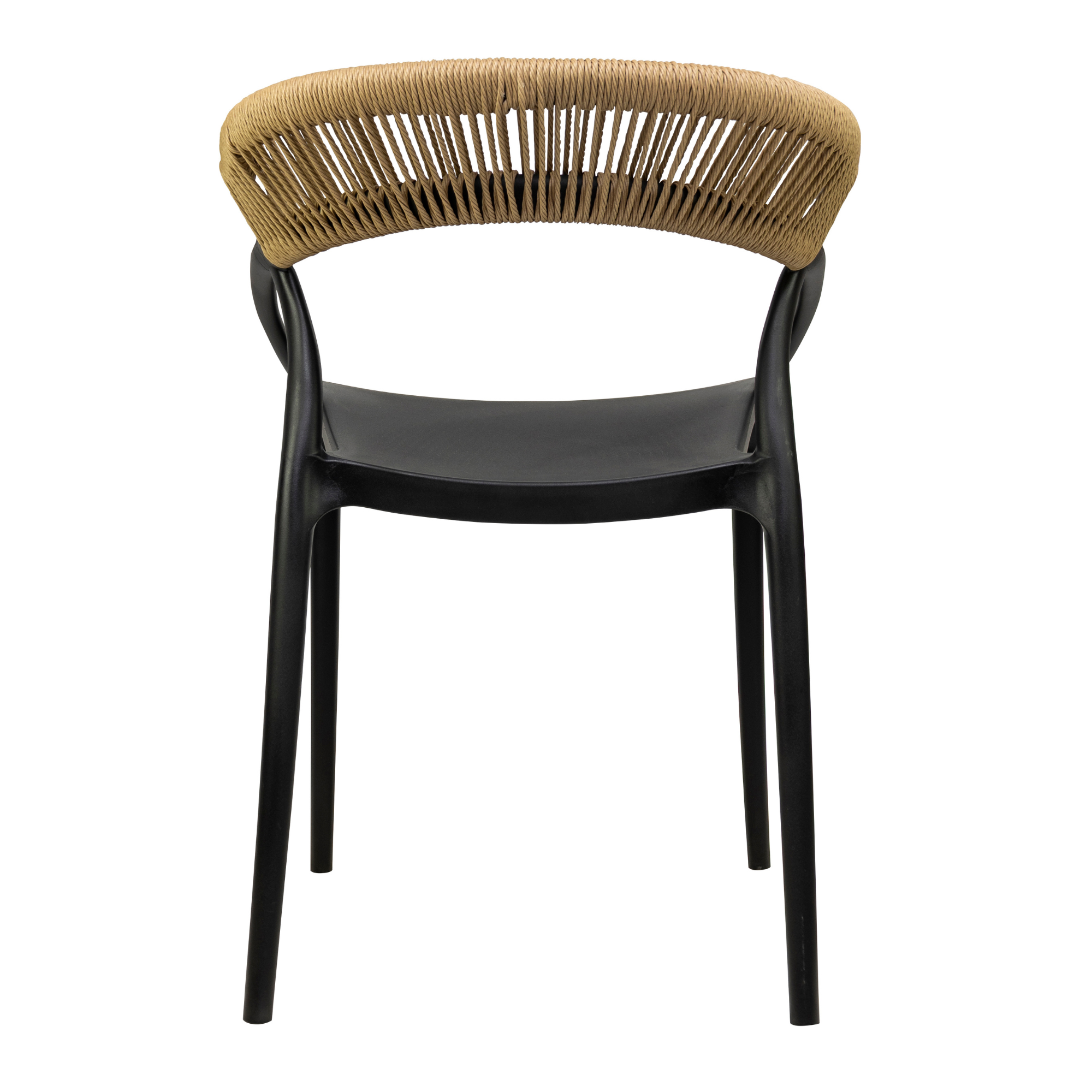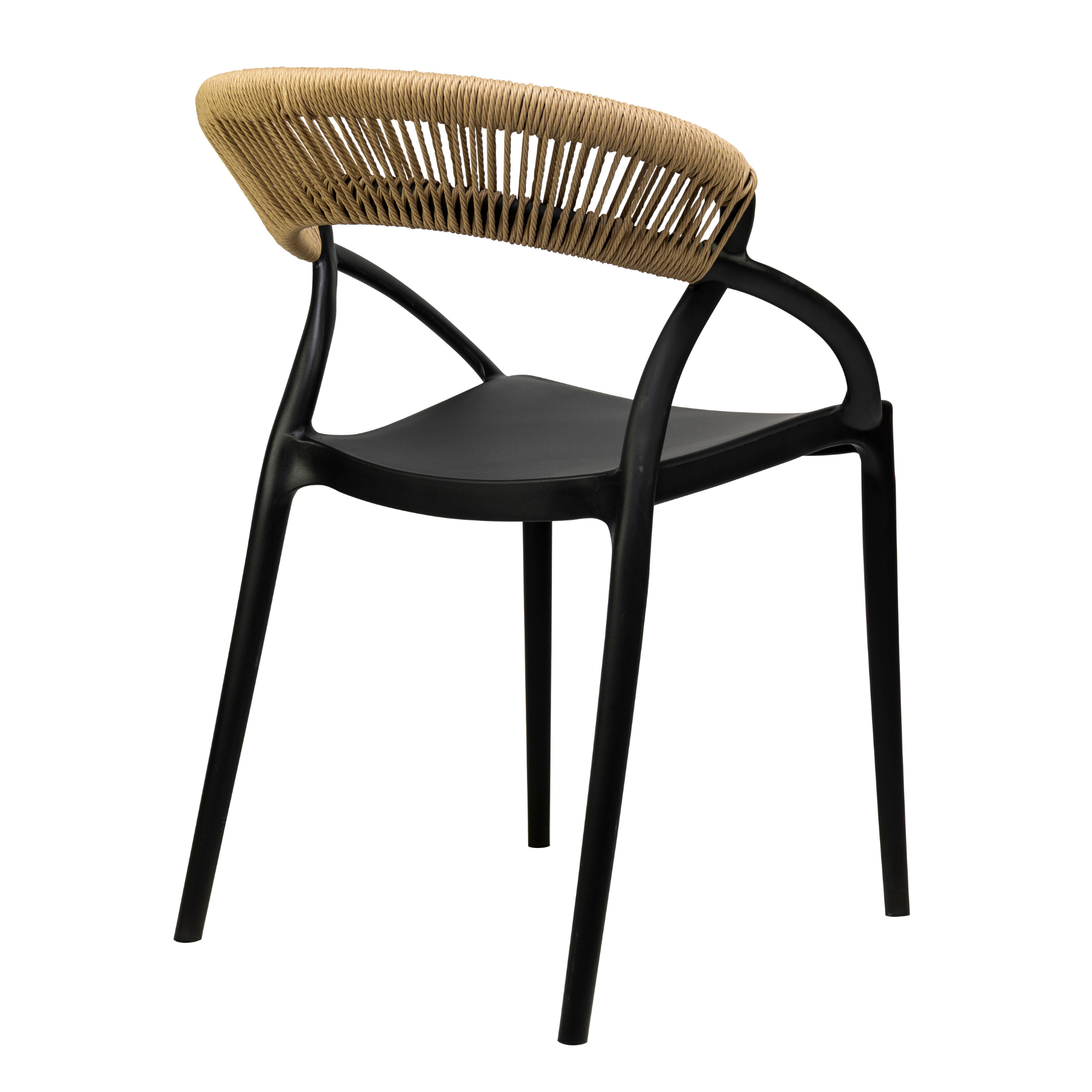 Cadrul este realizat din polipropilena rezistenta la UV, intarita cu fibra de sticla pentru un plus de durabilitate, iar impletitura din franghie este rezistenta la intemperii. Scaunul este stivuibil, ideal pentru utilizare profesionala, facilitand depozitarea.