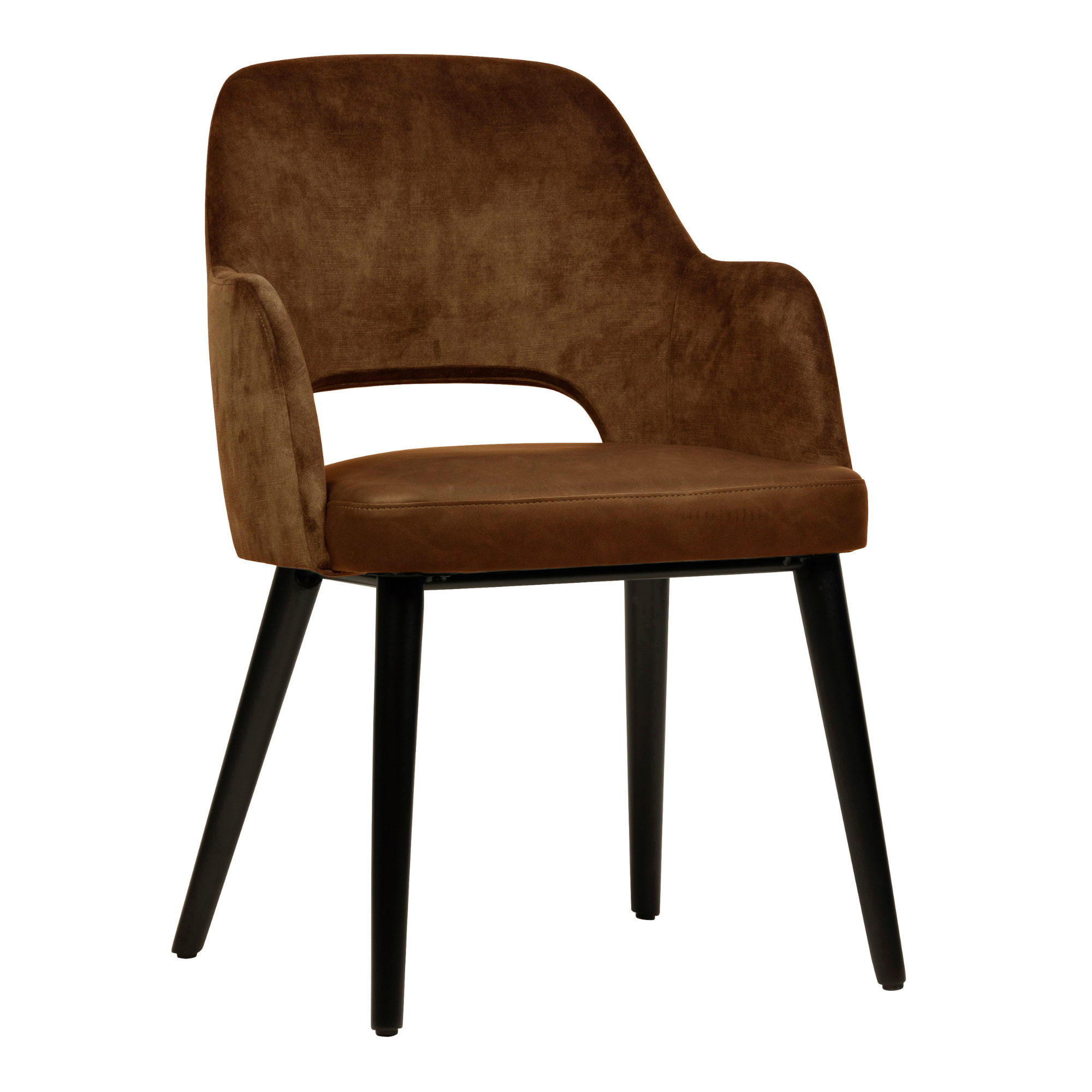 Confortabil si modern, scaunul Olsen atrage cu adevarat atentia prin designul sau, caracterizat prin deschiderea din spate si cotierele confortabile. Sezutul este tapitat cu piele ecologica, in timp ce spatarul si cotierele scaunului Olsen sunt acoperite cu o tesatura moale de catifea. Picioarele negre din lemn confera scaunului un aspect robust. Olsen este completarea ideala a interiorului tau, unde functionalitatea si designul se imbina perfect. Olsen este disponibil in mai multe nuante.