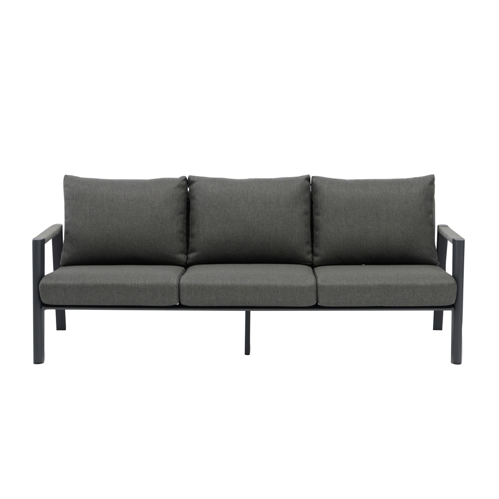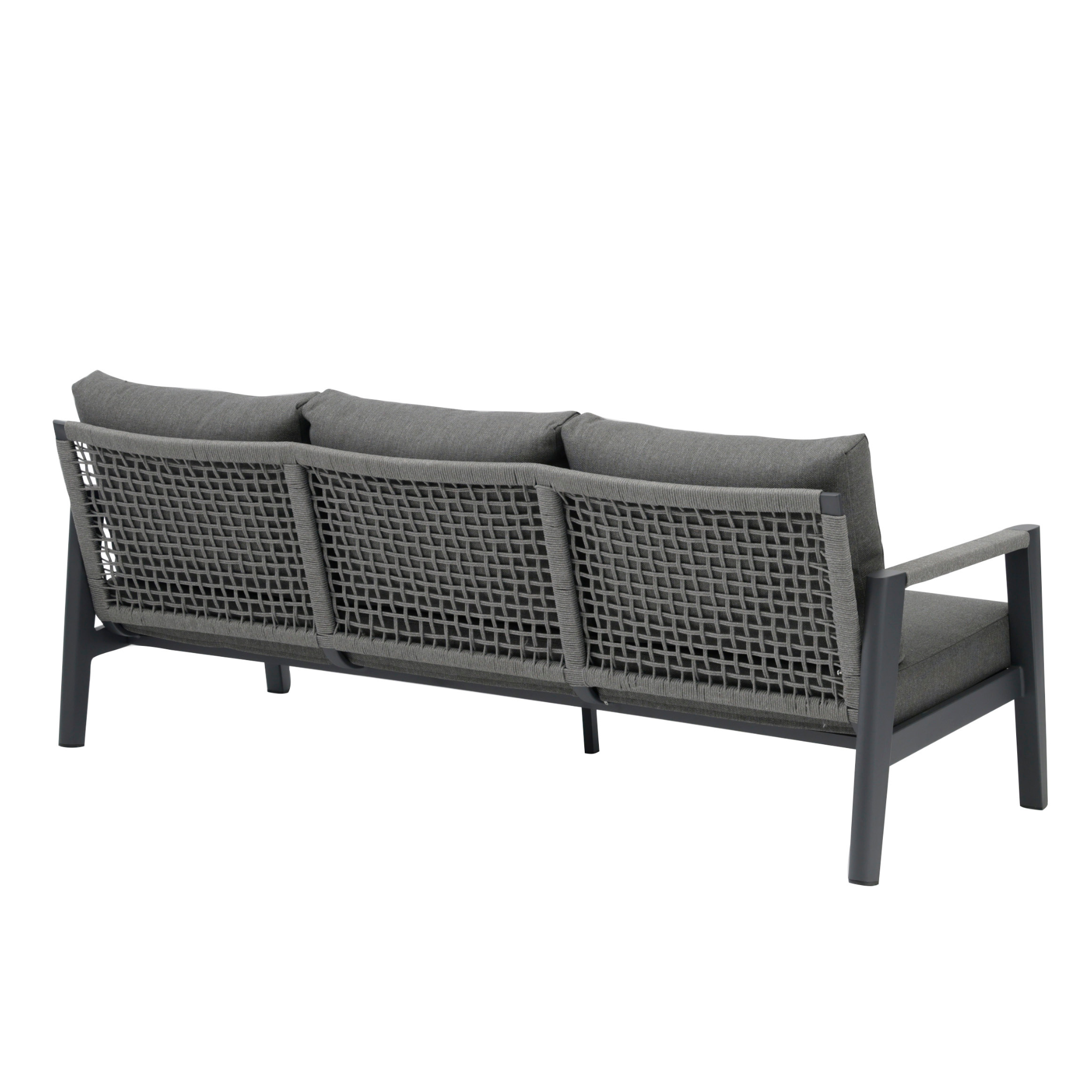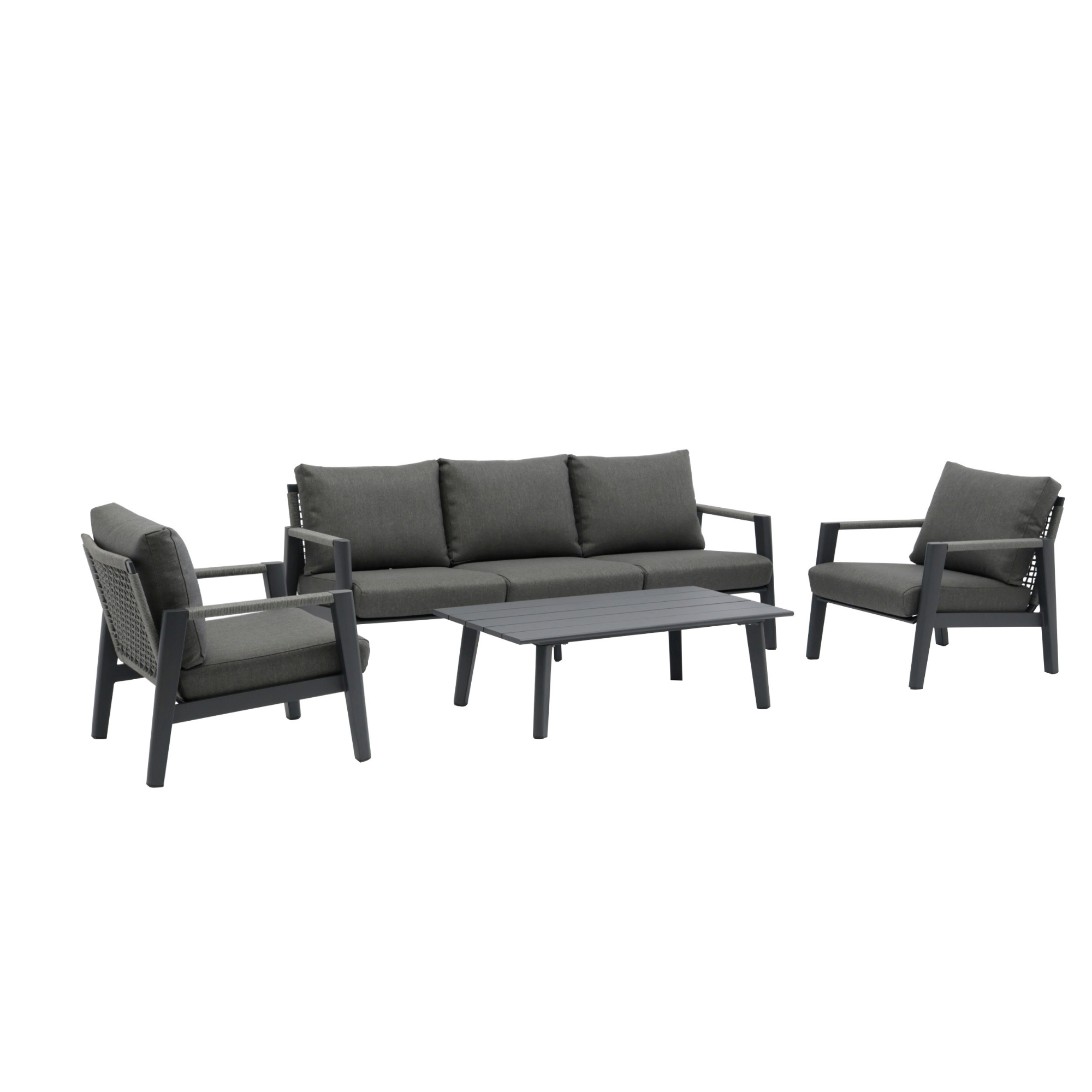 Set mobilier pentru exterior Hana, canapea 3 locuri, 2 fotolii si masuta, cadru din aluminiu, antracit