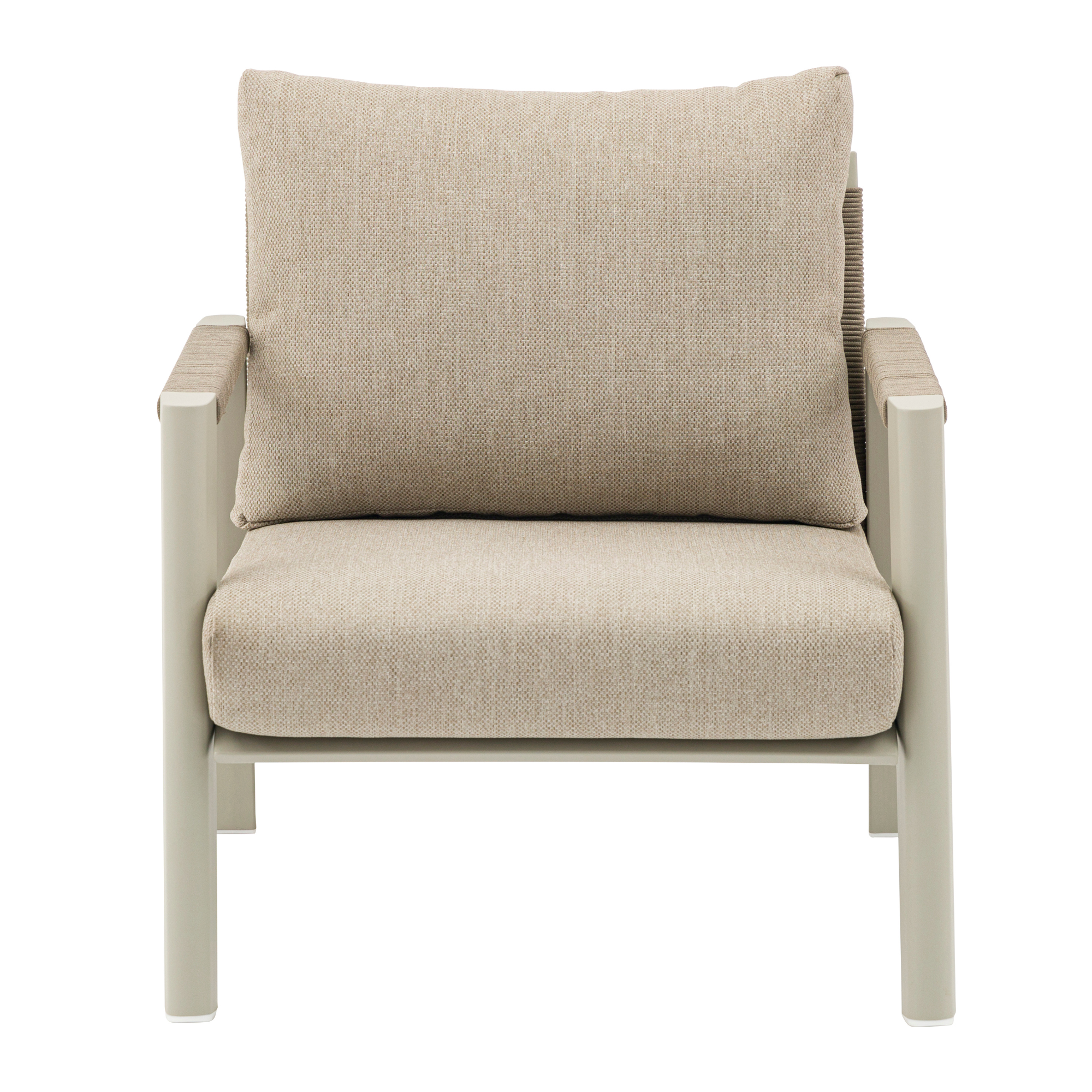 Set mobilier pentru exterior Hana, canapea 3 locuri, 2 fotolii si masuta, cadru din aluminiu, bej